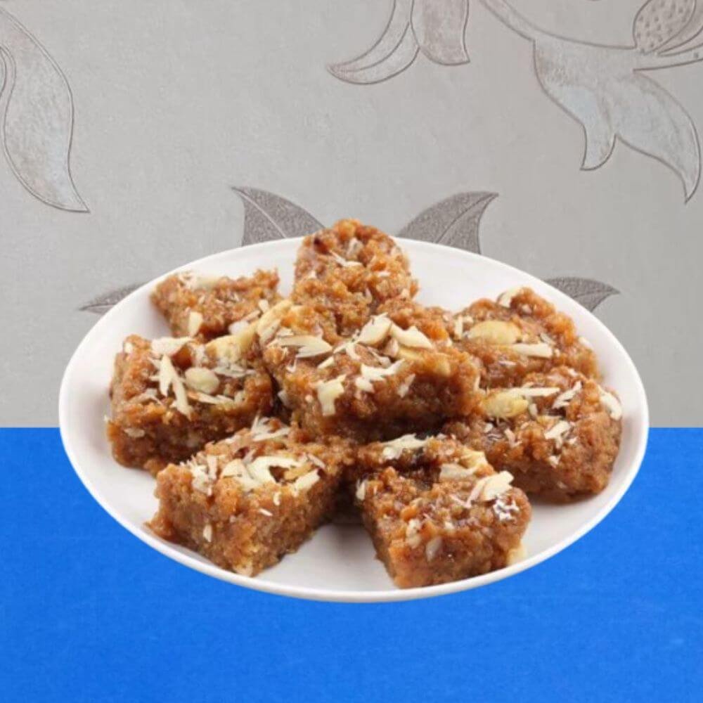The unique preparation process includes caramelizing milk solids (khoya/mawa) with wheat flour, giving Doda Barfi its signature grainy texture and rich brown colour. Its decadent sweetnessand the richness of nuts and aromatic spices make it a perfect treat for festivals, celebrations, and gifting.
