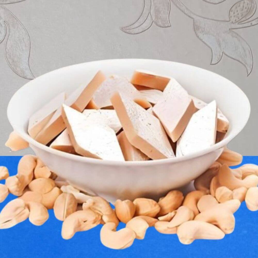 Today’s Fresh Kaju Barfi is a favourite of people of all ages. Its rich, nutty flavour and melt-in-the-mouth texture make it a beloved Indian dessert. It is used on special occasions like festivals, parties or as a gift.