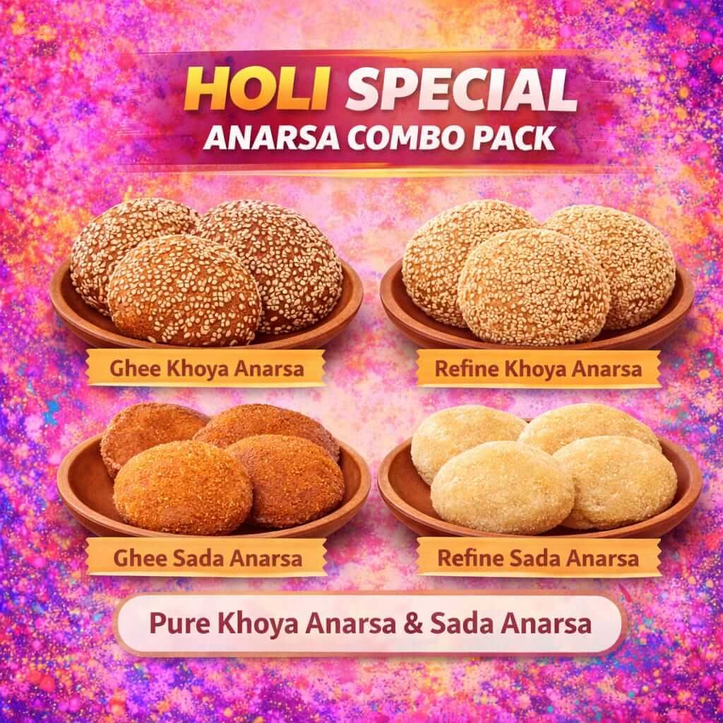 Holi Special Sweet Combo Pack – Includes 4 varieties of traditional Anarsa sweets